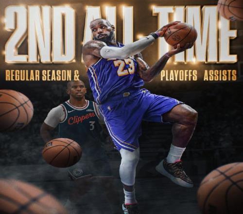 重新回到赛场之后,湖人开始发力,尤其是四旬老汉勒布朗詹姆斯,得分和组织一肩挑,四节战罢砍下了26分、7个篮板、10次助攻和1次抢断的全面个人数据,其中常规赛和季后赛总助攻次数超越保罗,独享历史第二,仅次于斯托克顿。